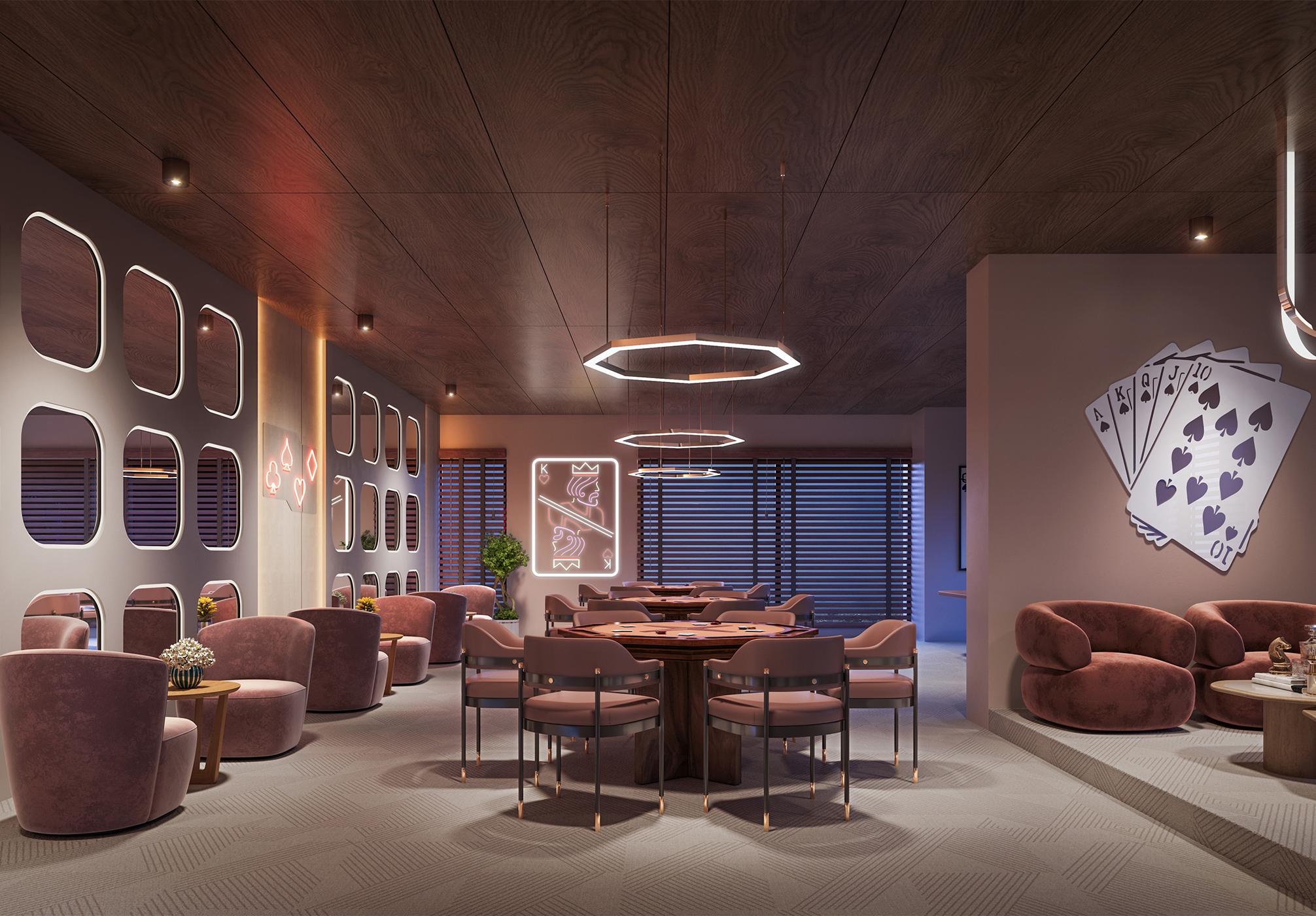 - The architecture features clean lines, a tall structure, and a functional skywalk connected to key amenities.